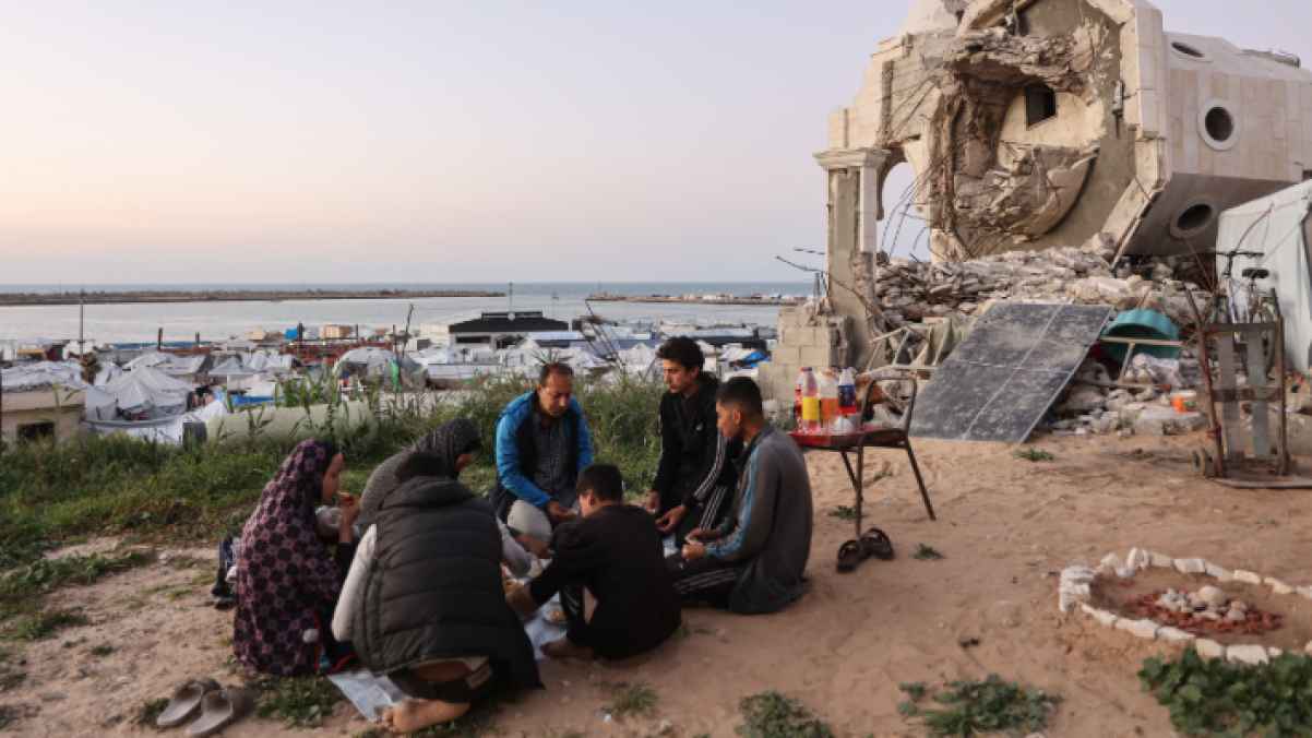 Amid the ruins of the al-Hasayna Mosque in western Gaza, the displaced al-Ghafir Palestinian family gathered around their simple tent to break their fast after a long day of Ramadan fasting, a scene full of calm and contentment despite harsh circumstances. Like many Gazans, the family has learned to find joy in the simplest things, drawing strength from family ties and mutual love.