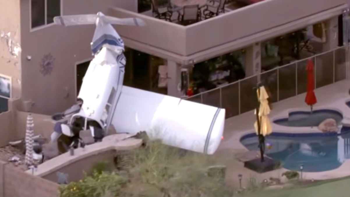 Phoenix Fire Captain Todd Keller said the plane had been heading west when the pilot had to turn back due to an unknown issue, but it struck the house, tearing off part of the roof before landing in the neighboring yard near a swimming pool.