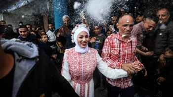 "مبروك أفنان".. حفل زفاف في القطاع بمدرسة للنازحين- فيديو وصور